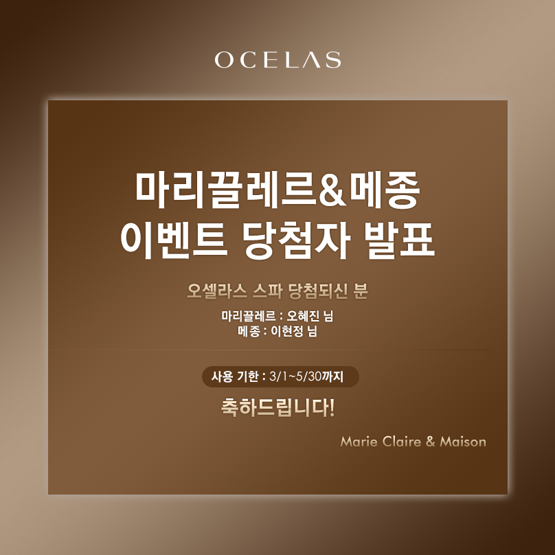 오셀라스 스파 <마리끌레르> 이벤트 당첨자 발표