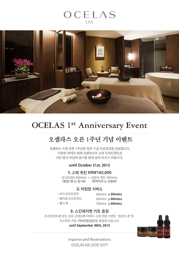 오셀라스 스파 오픈 1주년을 맞아 기념 프로모션을 선보입니다.