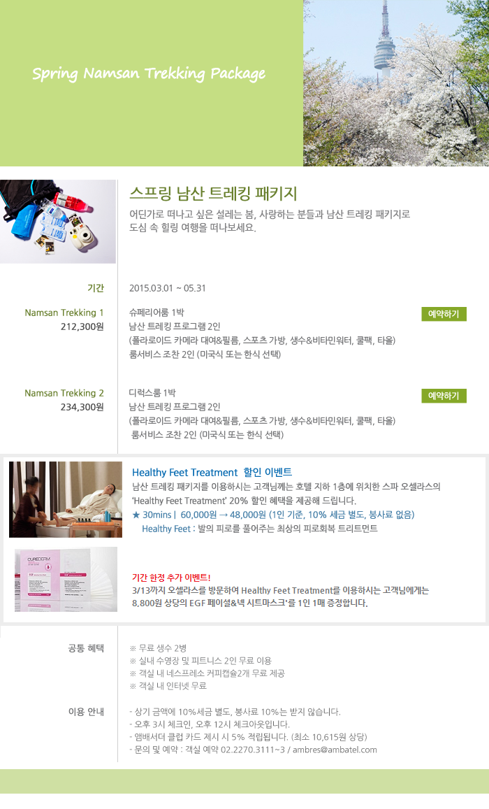 기간 2016.03.01 ~ 05.31 스프링 남산 트레킹 패키지를 이용하시는 고객님께