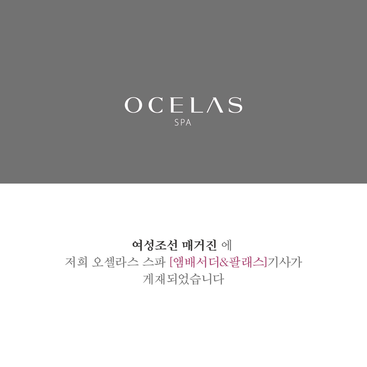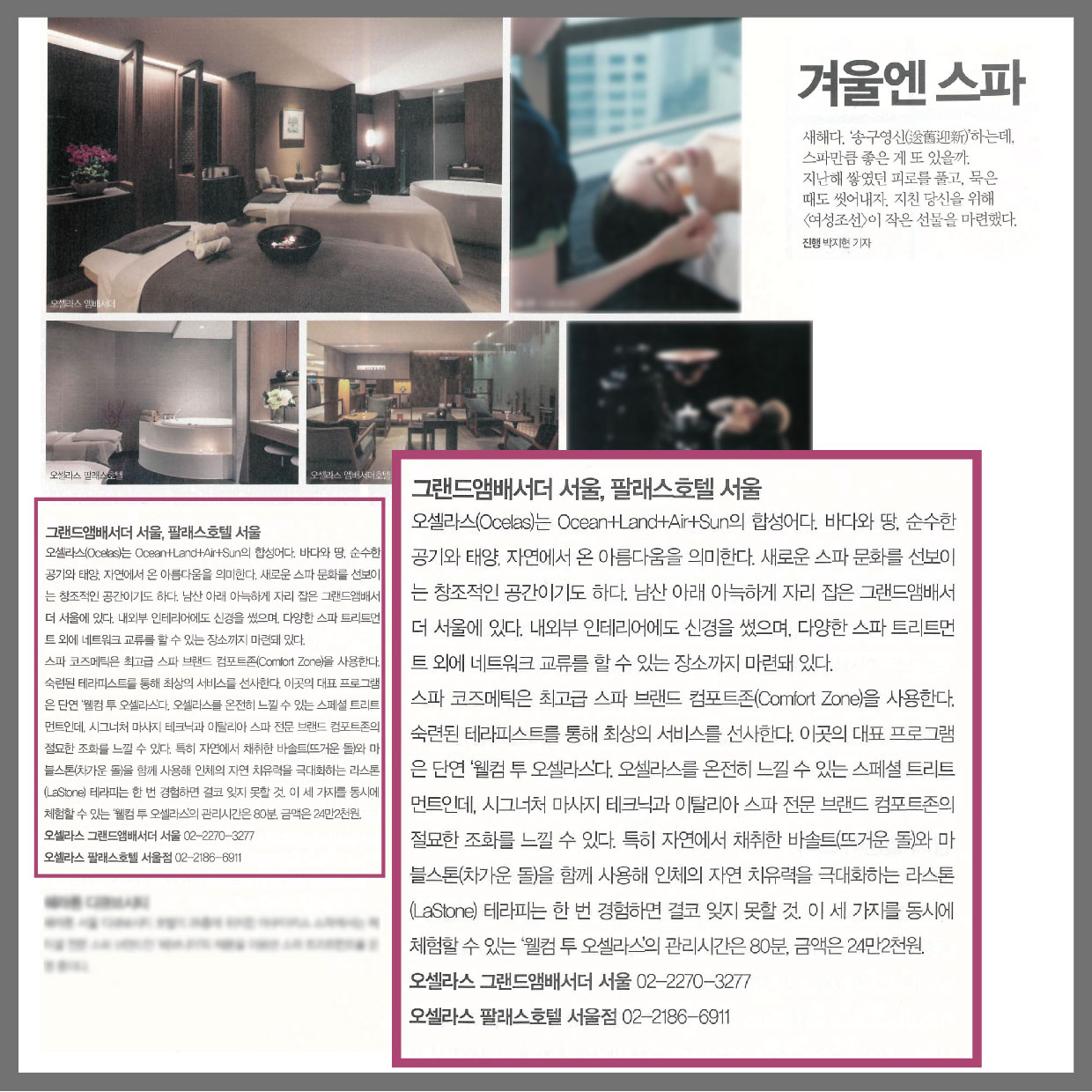 [Magazine] '여성조선' 매거진에 앰배서더&팔래스 스파가 소개되었습니다. | ![]() |