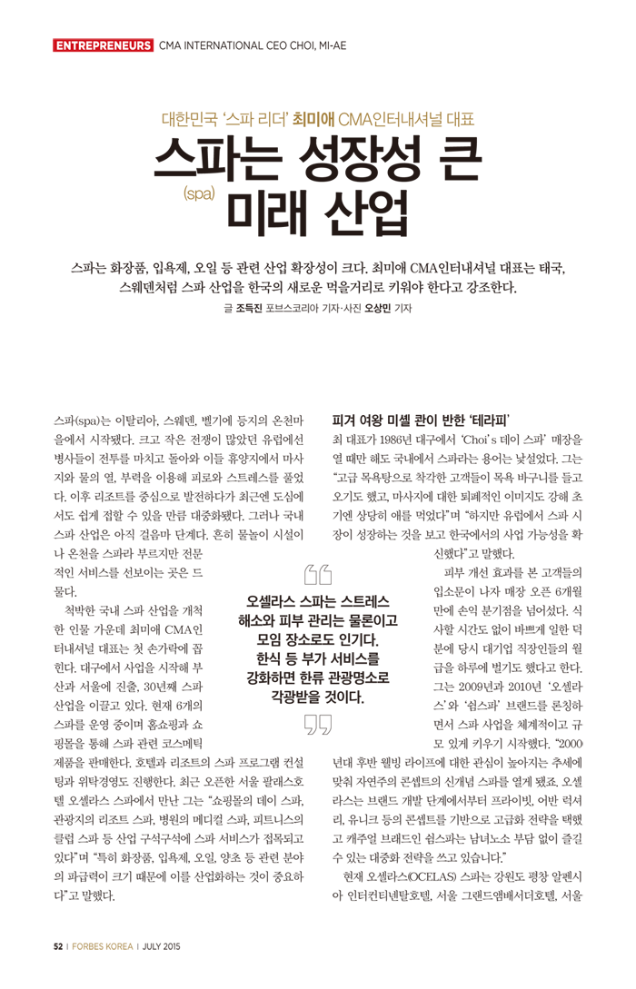 [오셀라스] 포브스 코리아 7월호 - 최미애 대표